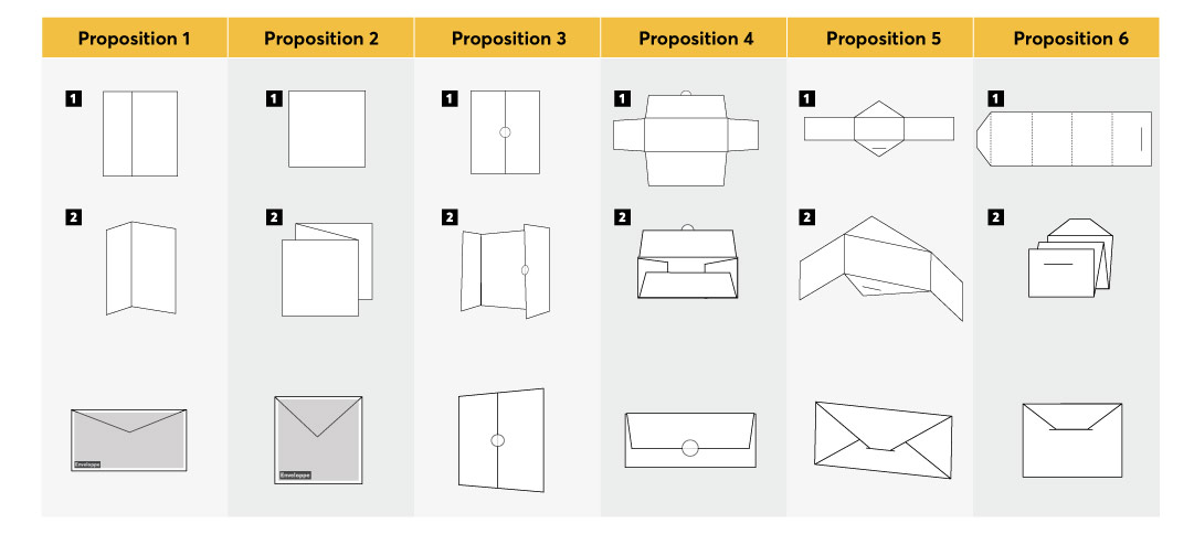 Nous avons donc proposé différentes options de cartes avec des pliages tout à fait différents, que l’on peut voir ici.